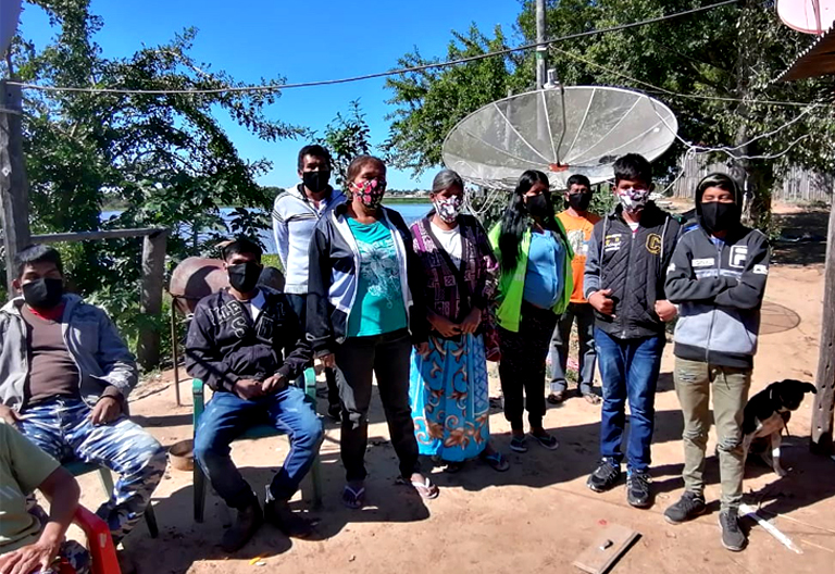 Imagen: la fotografía de portada fue tomada y enviada por Mario Posorojna, personal de blanco del Puesto de Salud de Carmelo Peralta. Había terminado de repartir tapabocas a los pobladores de Puerto María Auxiliadora y se hallaban charlando sobre el uso correcto y el mantenimiento de los mismos. Corresponde a la mañana del sábado 23 de mayo de 2020.